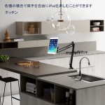 【球体関節・360度回転可能】:ホルダーは球体関節のデザインを採用されておりますので、360度回転可能で自由な位置にiPadをしっかりと固定できます。アームも様々な角度に調整可能な多関節で向き・角度・高さで使用できます。